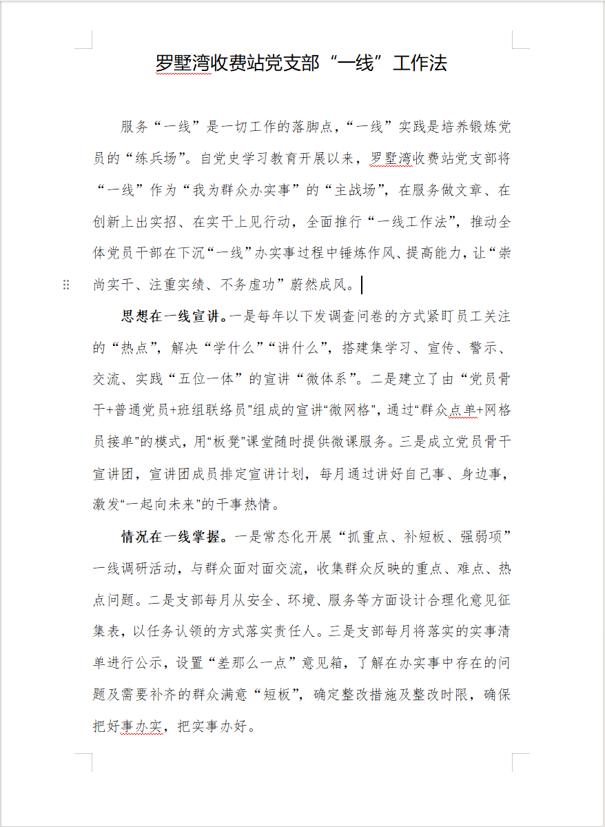 罗墅湾收费站党支部“一线”工作法