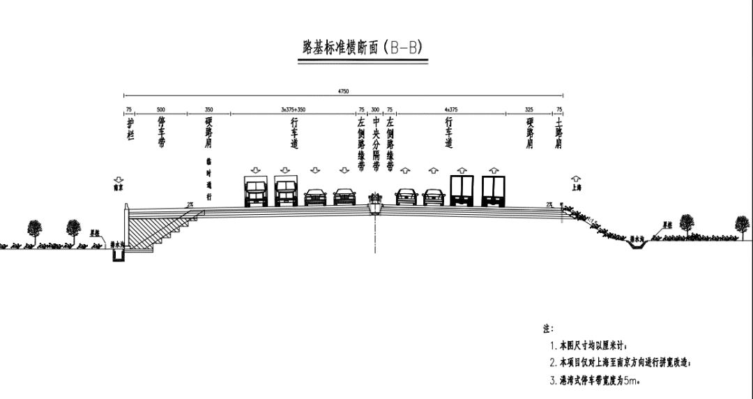 港湾停车带项目是沪宁路超大流量路段通行保障关键技术研究课题的重要节点工程。项目采用拼宽方式,在道路双向各增设3个港湾式应急救援点,每个港湾段平均长度320米。该项目的实施,可以有效缓解沪宁路最繁忙路段——硕放枢纽至东桥枢纽段的大流量保畅难题,促进道路通行能力最大化。 ▲港湾停车带项目路基横断面图 会议要求参会各方充分认识项目建设的重要性和紧迫性,要集思广益,群策群力,将该项目打造成“平安、精品、效率”工程。 精心交通组织,打造平安工程 设立交安组,负责警示锥桶及标志牌维护、施工车辆安全管理、防堵预案启动等工作;安排清障力量值守,快速响应事故、故障特情;主线情报板不间断播放施工信息,智慧警示锥桶物联高德导航,提醒途经车辆注意避让;常态化设置防撞车、定向高音喇叭,引入误闯入智能预警路锥,为施工人员和设备提供多层级安全防护。 精细技术交底,打造精品工程 技术交底会上,设计单位代表分别就所承担标段施工图进行了详细汇报,重点介绍了项目的施工技术要点,并对港湾段拼宽施工中涉及的盲沟、砼板配筋、胀缝布设和泡沫砼控制指标等问题进行了答疑,确保工程质量全面达标。设计单位根据会议要求将在5个工作日内完成图纸修改并尽快定稿,为施工单位尽快开工建设创造条件。 ▲设计方及施工方进行现场踏勘 精确工期编制,打造效率工程 会议要求项目各方克服时间紧、任务重、交叉作业多等难点,所有分项工程建设要围绕10月1日开放使用抓紧实施,倒排计划。项目施工方要把握夜间施工效率高的特点,多工种交叉作业,多点位同步推进;根据路段流量实际情况,采用分时段交通管制方案,促进施工期间道路通行能力最大化。争取8月下旬结束土建施工,9月上、下旬分别完成罩面工程以及标线标牌、设备调试等配套工程,确保国庆节顺利投入使用。
