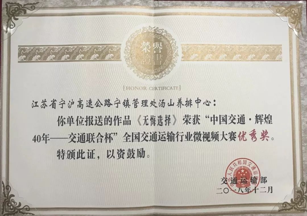 近年来,汤山养排中心不断创新工作方法,拓宽服务内涵,强化内部管理,收获喜人成果。中心先后被评为控股系统“苏高速.茉莉花”四星站区;控股公司2018年度“抗冰雪保畅通先进集体”;中心“橙色工匠”QC小组被评为 2019年度江苏省质量协会“优秀QC小组”;中心自主研发的“智能主动预警系统” 获2019年度控股公司“优秀成果奖”并申报国家专利;中心拍摄制作的微视频《无悔选择》获“中国交通·辉煌40年——交通联合杯”全国交通运输行业微视频大赛优秀奖。
